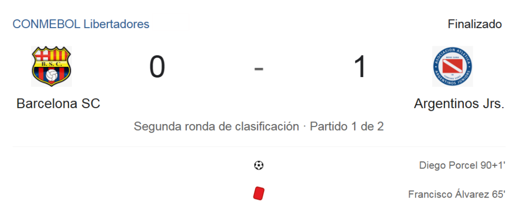 LIBERTADORES || Barcelona perdió en casa 0 -1 ante Argentinos