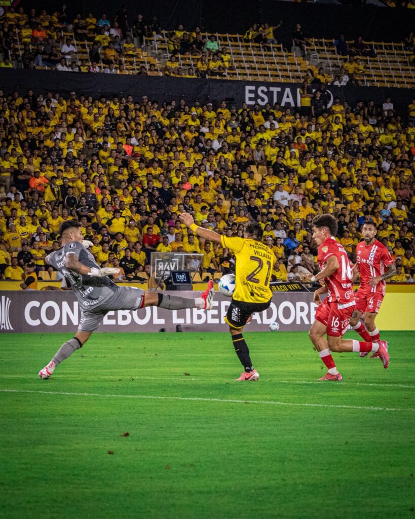 De a poco, Barcelona le quitó la posesión a su rival, que tampoco se apuró en demasía para atacar. Entre Quiñónez y Benedetto crearon una de las pocas acciones cerca del arco de Brayan Cortés, pero el disparo del ecuatoriano salió muy desviado.