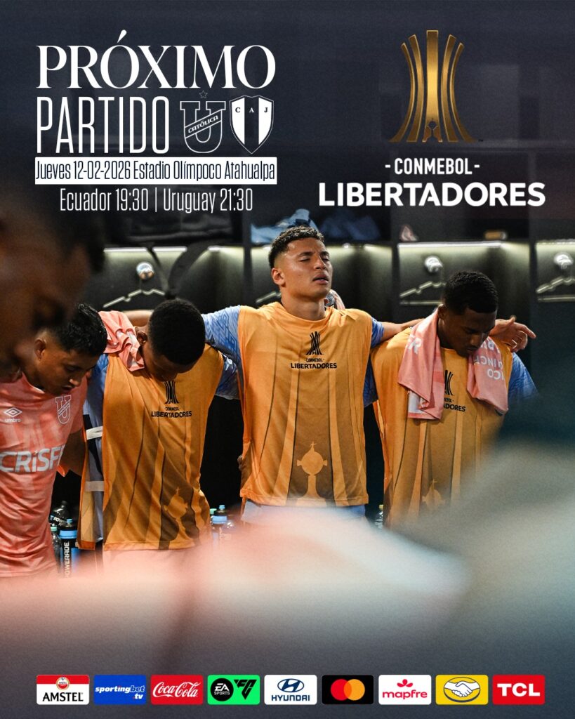 Universidad Católica recibirá el jueves 12 de febrero de 2026 a Juventud, por el partido de vuelta de la fase 1 de la Copa Libertadores, en el estadio Olímpico Atahualpa. Los dirigidos por el entrenador Diego Martínez tienen una ventaja de un gol, tras vencer al equipo uruguayo por 1-0 en el partido de ida en el estadio Centenario Montevideo.