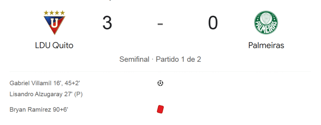 Liga de Quito fue una máquina en el primer tiempo ante Palmeiras y logró una goleada por 3-0, en la semifinal de ida de la CONMEBOL Libertadores. El cuadro ecuatoriano saca una buena ventaja para la vuelta en Sao Paulo. El partido se puede revivir por el Plan Premium Disney+ (solo para Sudamérica).