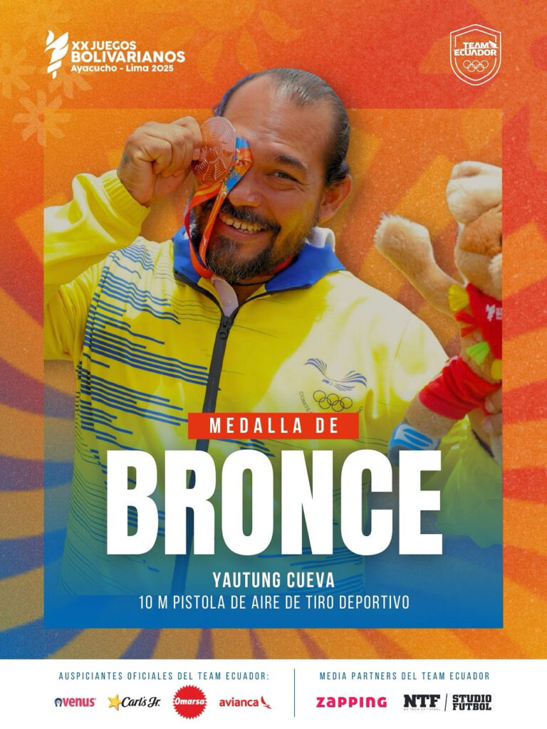 Frenando Pozo y Yautung Cueva dominaron la prueba de 10 m pistola de aire coronándose campeón y medallista de bronce en los Juegos Bolivarianos Ayacucho Lima 2025.