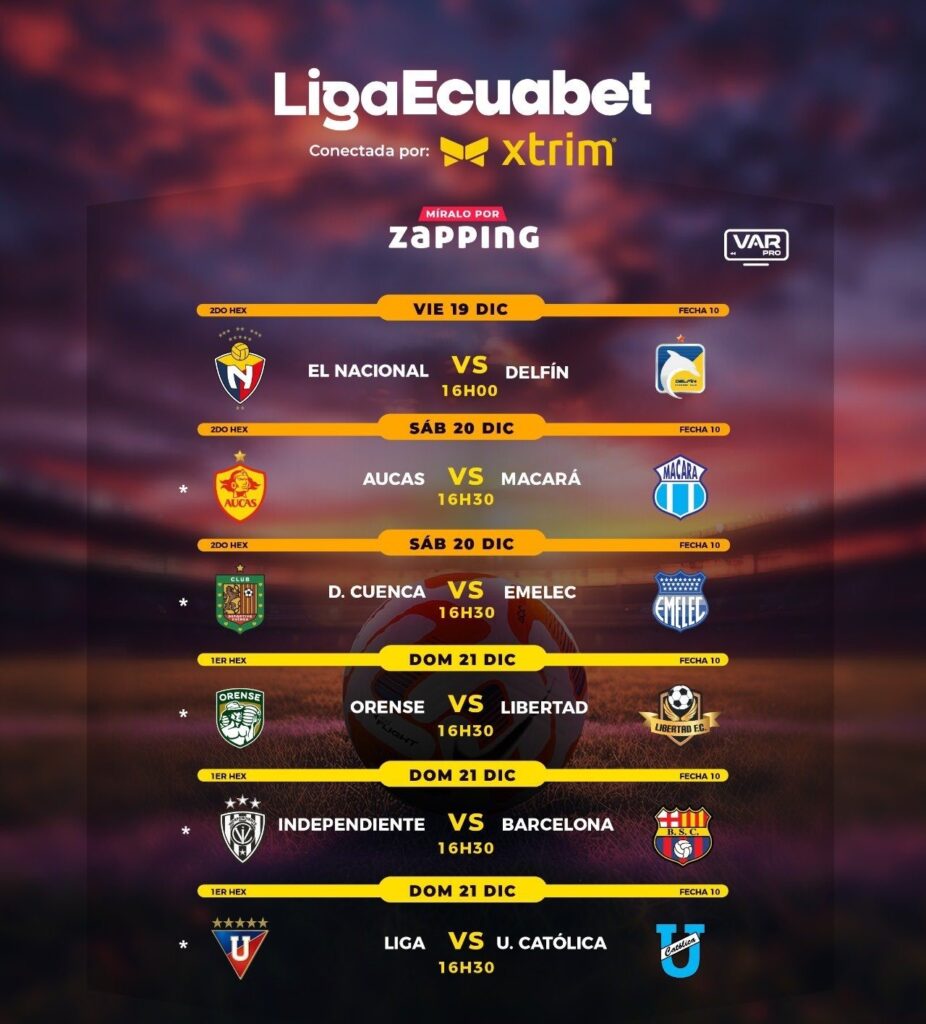 Una vez declarado campeón de la LigaPro 2025, definido con Independiente del Valle, la organización reveló los detalles para la programación de los últimos seis partidos de la temporada con el primer y segundo hexagonal.