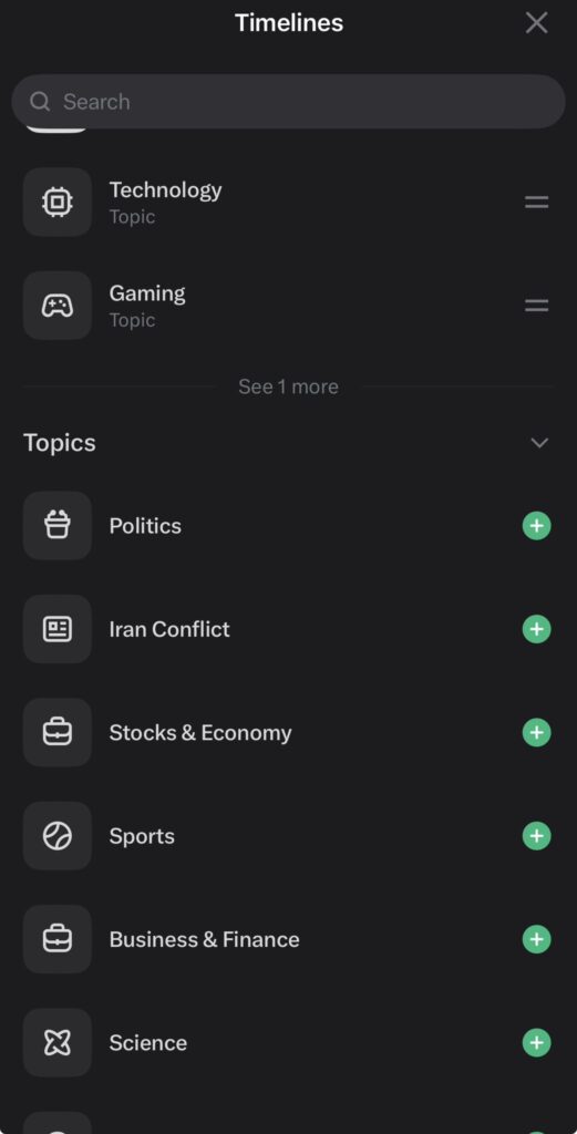 Los ‘Timelines’ de X permiten fijar más de 75 temas en el ‘feed’ principal.