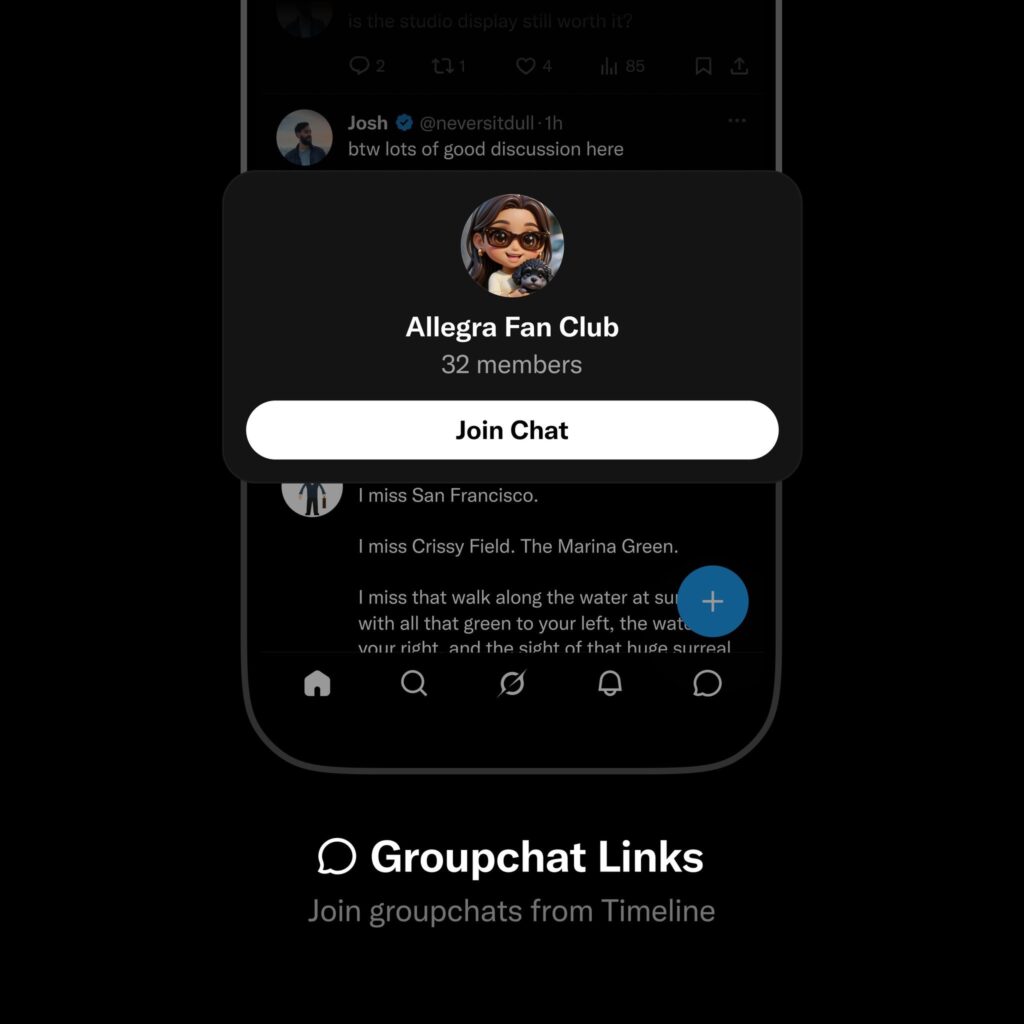 Por otra parte, X anunció una nueva actualización que permite unirse a un chat grupal dentro de XChat, con usuarios limitados, reemplazando así la función de Comunidades dentro de la plataforma, que dejará de estar disponible a partir del 6 de mayo. Las Comunidades se lanzaron a finales de 2021, cuando X aún era Twitter, como una característica destinada a formar grupos según los intereses de los usuarios. Estos espacios eran creados y administrados por personas y los usuarios se podían unir a ellas a través de una invitación.