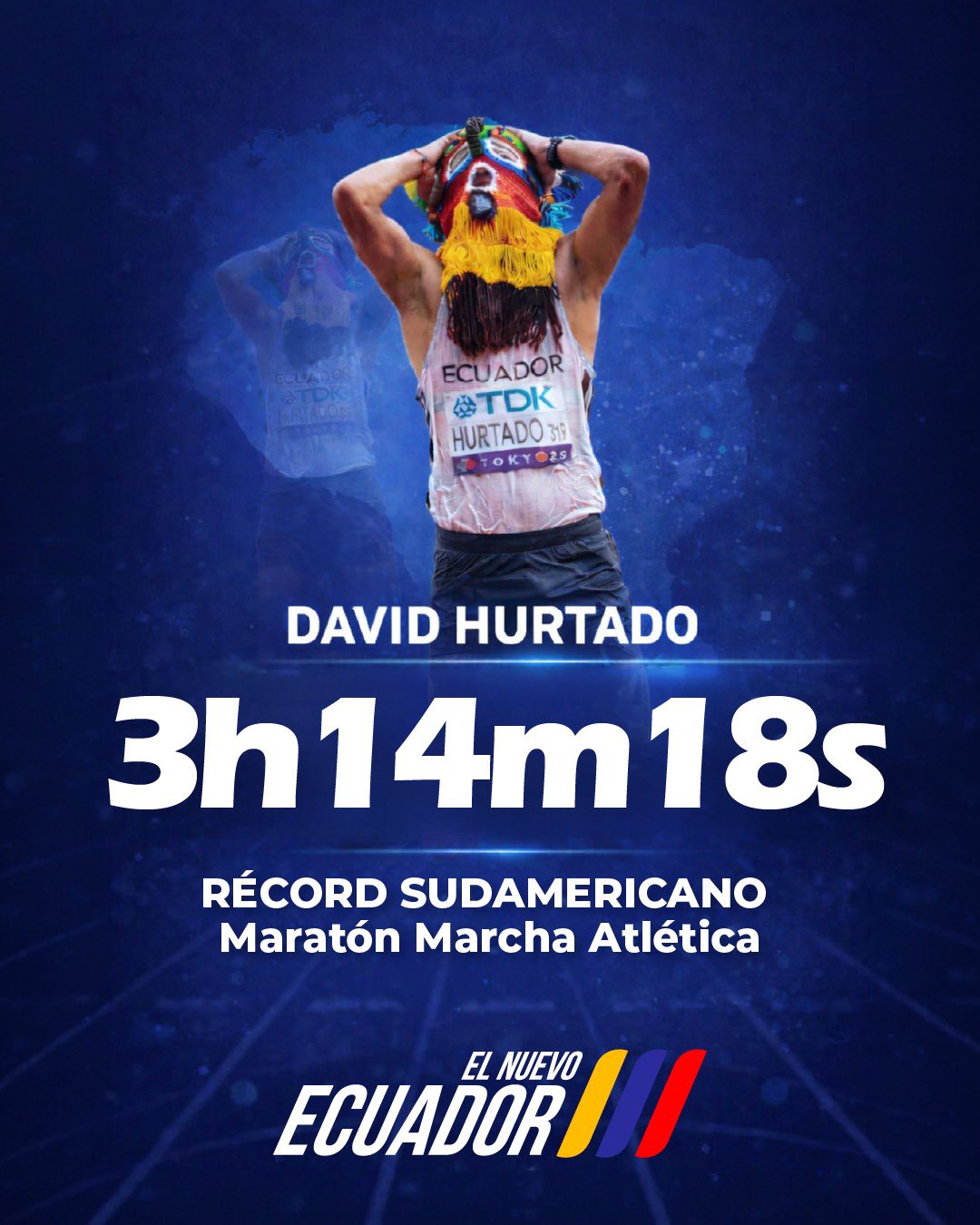 El deporte ecuatoriano suma un nuevo hito histórico. El marchista David Hurtado estableció un récord sudamericano en la distancia de maratón de marcha (42,195 kilómetros). Esto lo logró durante su participación en el Campeonato de España celebrado en la localidad de Cieza.