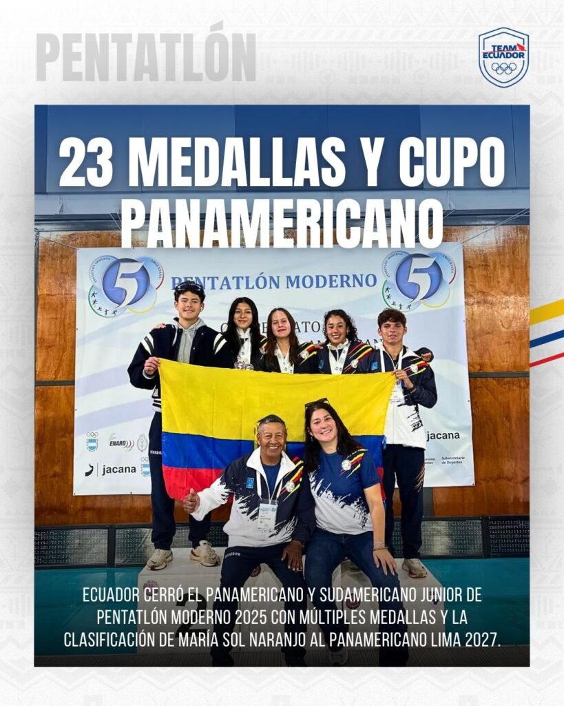 Ecuador cerró su participación en el Campeonato Panamericano y Sudamericano de Pentatlón Moderno Junior 2025, realizado en Buenos Aires del 1 al 6 de noviembre, con un total de 23 medallas, distribuidas en 20 oros y 3 bronces, bajo la dirección del profesor Galo Quiguantar.
