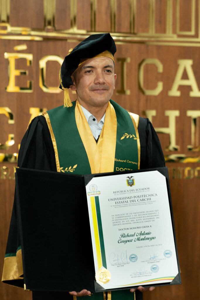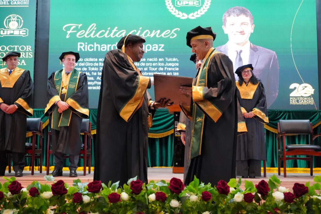 Richard Carapaz recibió el título de Doctorado Honoris Causa por parte de la Universidad Politécnica Estatal del Carchi (UPEC), en reconocimiento a su «destacada trayectoria y aportes excepcionales a nivel mundial».