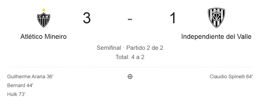 Atlético Mineiro derrotó 3-1 a Independiente del Valle (4-2 en el global) y se clasificó a la final de la CONMEBOL Sudamericana. El cuadro ecuatoriano no pudo acceder a su tercera final, tras ganar dos, en el segundo torneo del continente. Se puede revivir por el Plan Premium Disney+ (para Sudamérica).