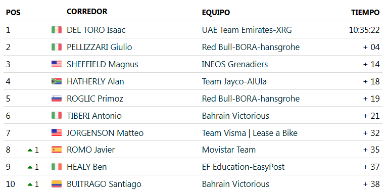 Milan, como era de esperar, lanzó su ataque. Demasiado pronto quizá. Y al igual que le pasó previamente, se quedó sin opciones demasiado rápido. Emergió la figura de Andresen, pegado a la rueda del italiano y que desde que se puso en cabeza no dejó escapar su gran victoria. De Lie y Philipsen siguieron su estela. Del Toro aguantó el liderato y volverá a ser ‘Maglia Azzurra’.