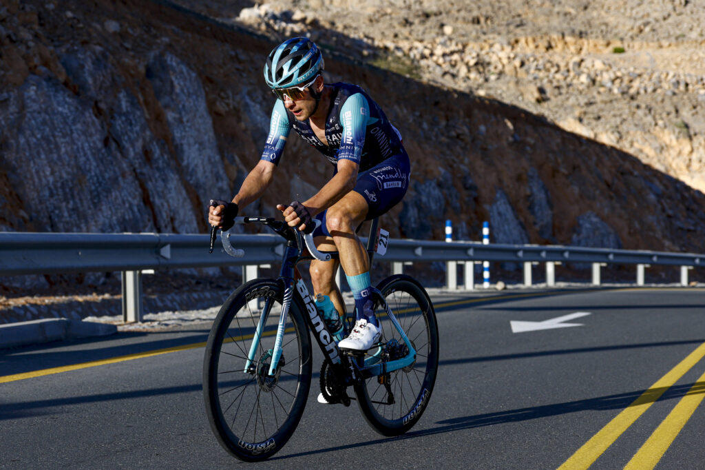 En la subida a Jebel Mobrah (13,2 km a 8.1%) aparecieron los equipos de los escaladores, que se alternaron la responsabilidad de llevar al grupo de favoritos. El primero en atacar fue el austriaco Felix Gall (Decathlon CMA CGM Team) y luego lo intentó el italiano Antonio Tiberi (Bahrain – Victorious), que terminó siendo el movimiento ganador.
