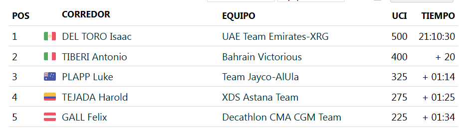 El campeón mexicano Isaac del Toro (UAE Team Emirates-XRG) conquistó la octava edición del UAE Tour en los Emiratos Árabes, tras mantener el liderato en la última etapa, una jornada llana de 149 kilómetros disputada en Abu Dabi.