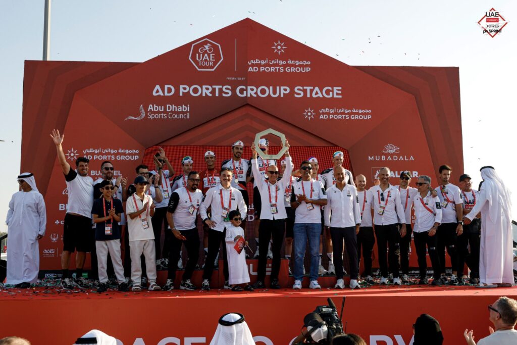 El pedalista latinoamericano se subió a lo más alto del podio de la carrera emiratí, acompañado del italiano Antonio Tiberi (Bahrain – Victorious) y del australiano Lucas Plapp (Team Jayco AlUla), segundo y tercero en la clasificación general.