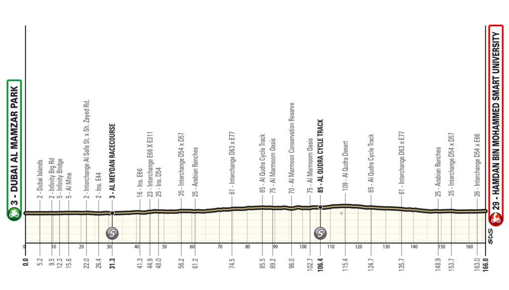 El UAE Tour afrontará este viernes su quinta etapa, de 166 kilómetros entre Dubai Al Mamzar Park y Hamdan Bin Mohammed Smart University, una jornada completamente llana que vuelve a presentarse propicia para los hombres rápidos antes del decisivo final en alto de Jebel Hafeet.