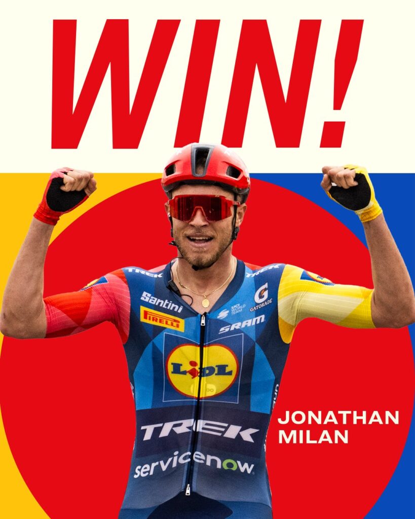 Ethan Vernon (NSN Cycling) y Matteo Milan (Groupama-FDJ United) completaron el podio en una llegada en la que los velocistas impusieron su ley. Cabe destacar que Jonathan y Matteo Milan, segundo y tercer clasificado, son hermanos.