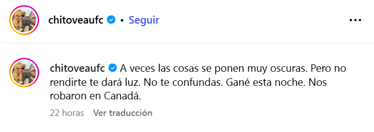 “Hoy gané y los jueces me robaron “, dijo unos minutos después en su cuenta de X, ratificando lo visto en el octágono.