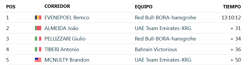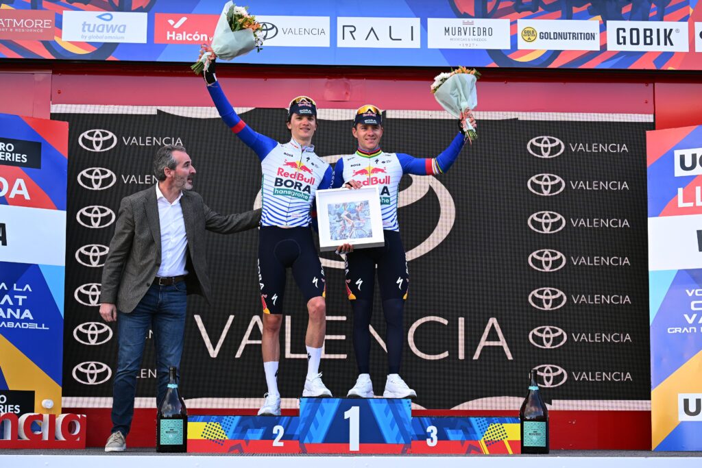 El Red Bull Bora controló por completo la etapa para garantizar sin sobresaltos el triunfo de Evenepoel, que además de la general se lleva dos etapas en esta edición, y permitió una escapada que llegó a buen puerto, aunque a punto estuvo de ser neutralizada en los últimos metros, y en la que el combativo Raúl García Pierna se llevó el premio de la victoria en Valencia.